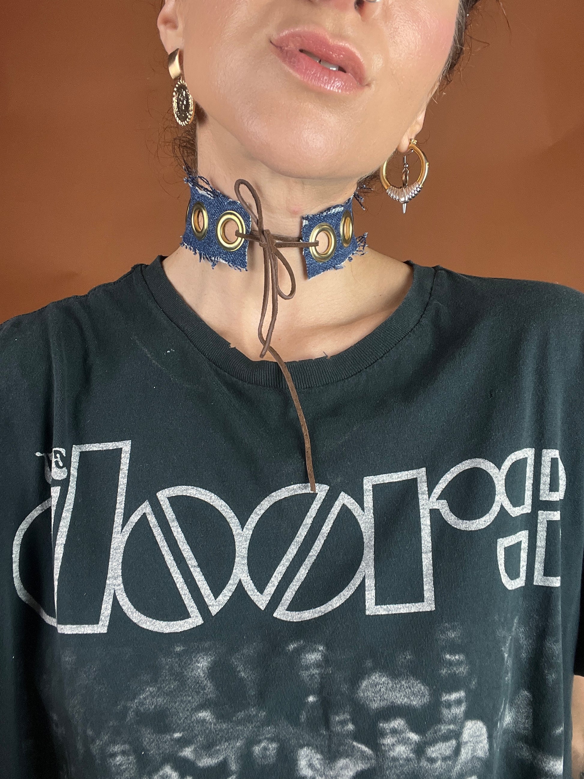Denim x Grommet Choker Necklace - Dark Wash - Full Metal